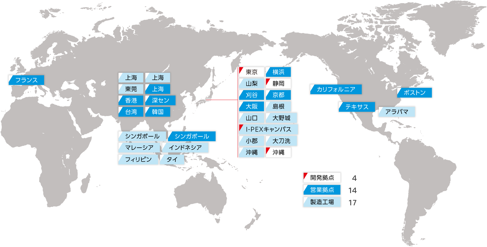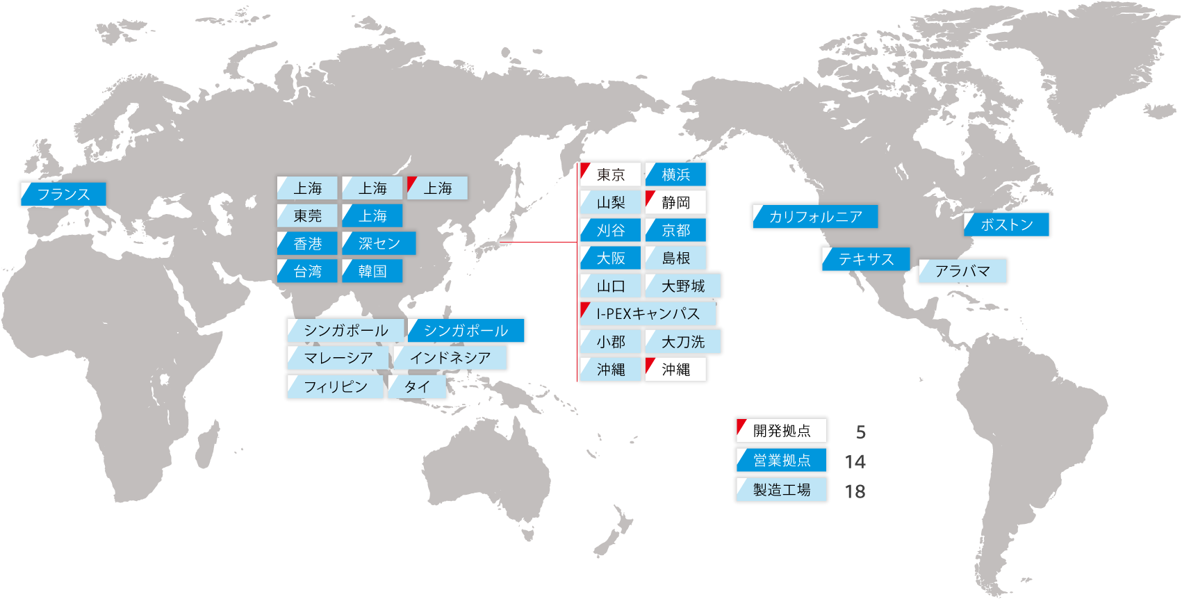 世界14箇所に営業拠点を設置し、FAE※による充実したサポート体制で要望を直接ヒアリング。即時解決と提案を図り、お客様の開発期間を短縮。トータルコストの削減にご協力します。